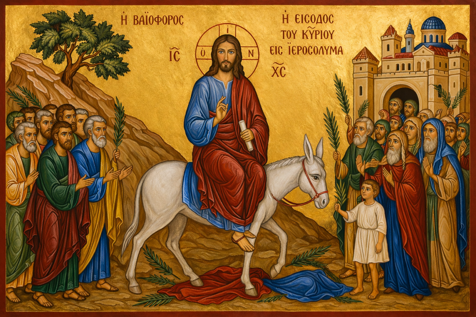 Cristo entra en Jerusalén sabiendo perfectamente a qué ha venido y lo que le espera. No le arrastra el fervor voluble de la multitud ni se deja elevar por el clamor de los hosannas. Conoce el fondo de los corazones y sabe que, tras aquellas voces de aclamación, se preparan ya el juicio, la soledad, la traición, la condena y la Cruz. Aun así, entra con la majestad serena del que ha venido a cumplir la voluntad del Padre, y lo hace como Rey verdadero. Fijémonos en los reyes de la tierra, que arman guerras y convocan batallas siempre a costa de la sangre de su pueblo; mientras sus gentes mueren, ellos engordan sus fortunas y se resguardan. Cristo, por el contrario, declara la guerra a la Muerte, y es Él mismo quien entra en combate y entrega su vida en dichoso intercambio. El rey de la tierra ensancha fronteras y levanta muros; Cristo abre por la herida de su costado el Reino de la gloria a todos los que creen en su Nombre.
